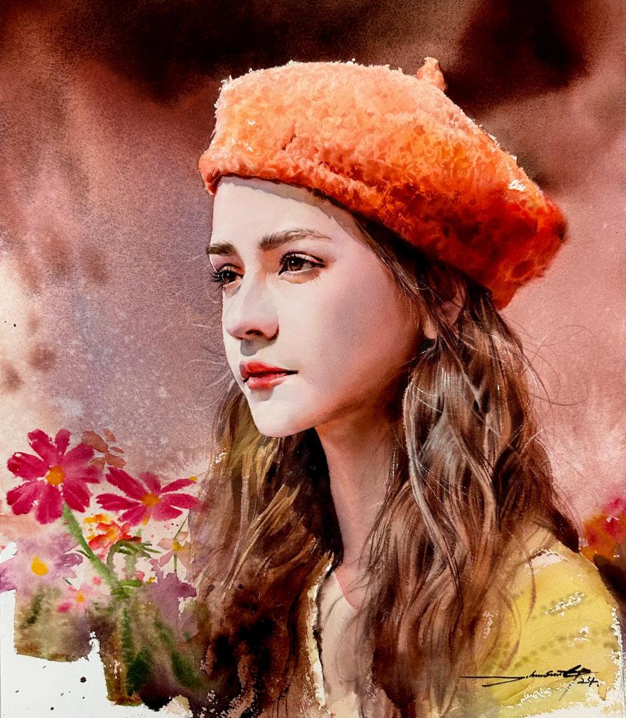 Born in South Korea, J. Hunsung began painting at the age of ten. Over time he dedicated his practice entirely to watercolor, developing a distinctive voice within the medium and gaining him global recognition. Hunsung is known for his hyperrealistic portraits. His process is guided by particular attention to the strength and clarity of pigment. Through precise technique and a refined sense of color, he creates pieces that feel vivid and lifelike while revealing the remarkable expressive range of watercolor.
